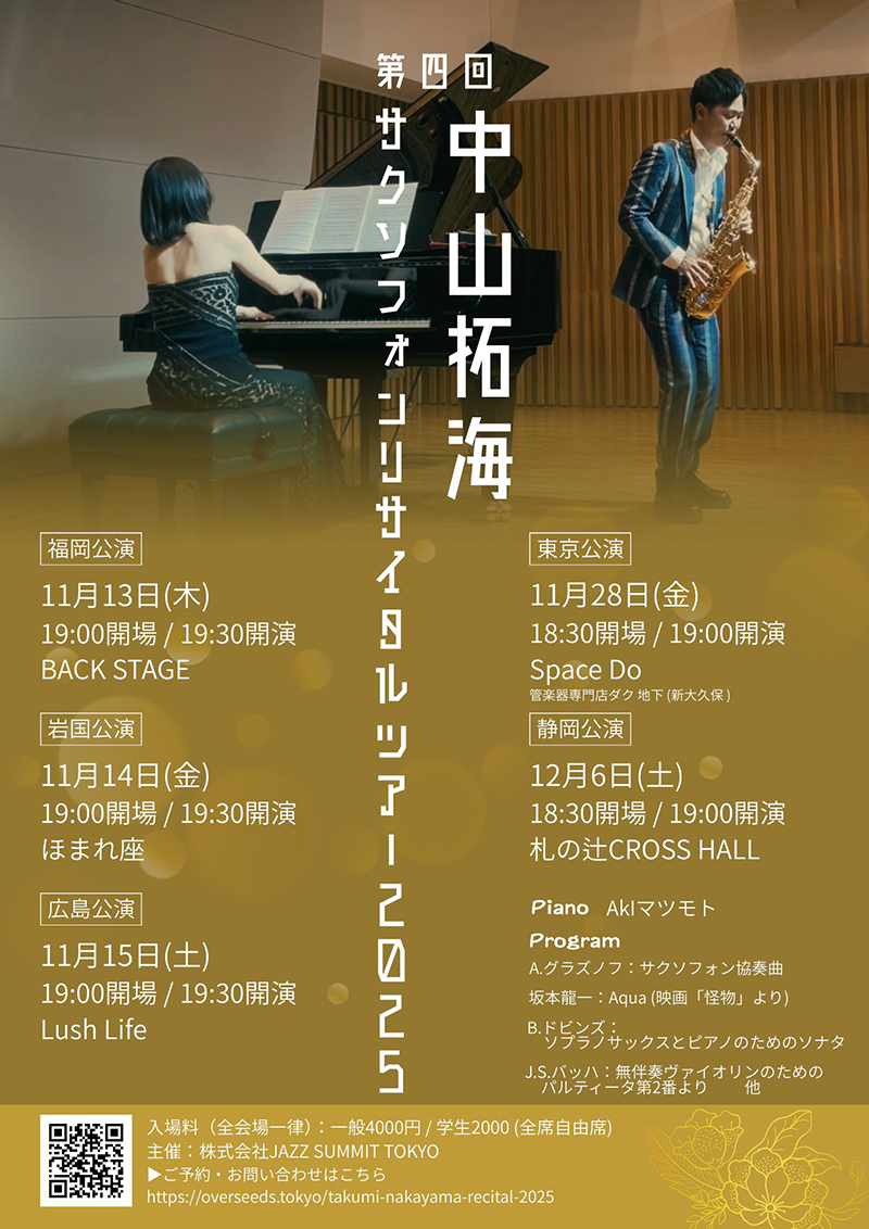第四回 中山拓海サクソフォンリサイタルツアー 2025 静岡公演