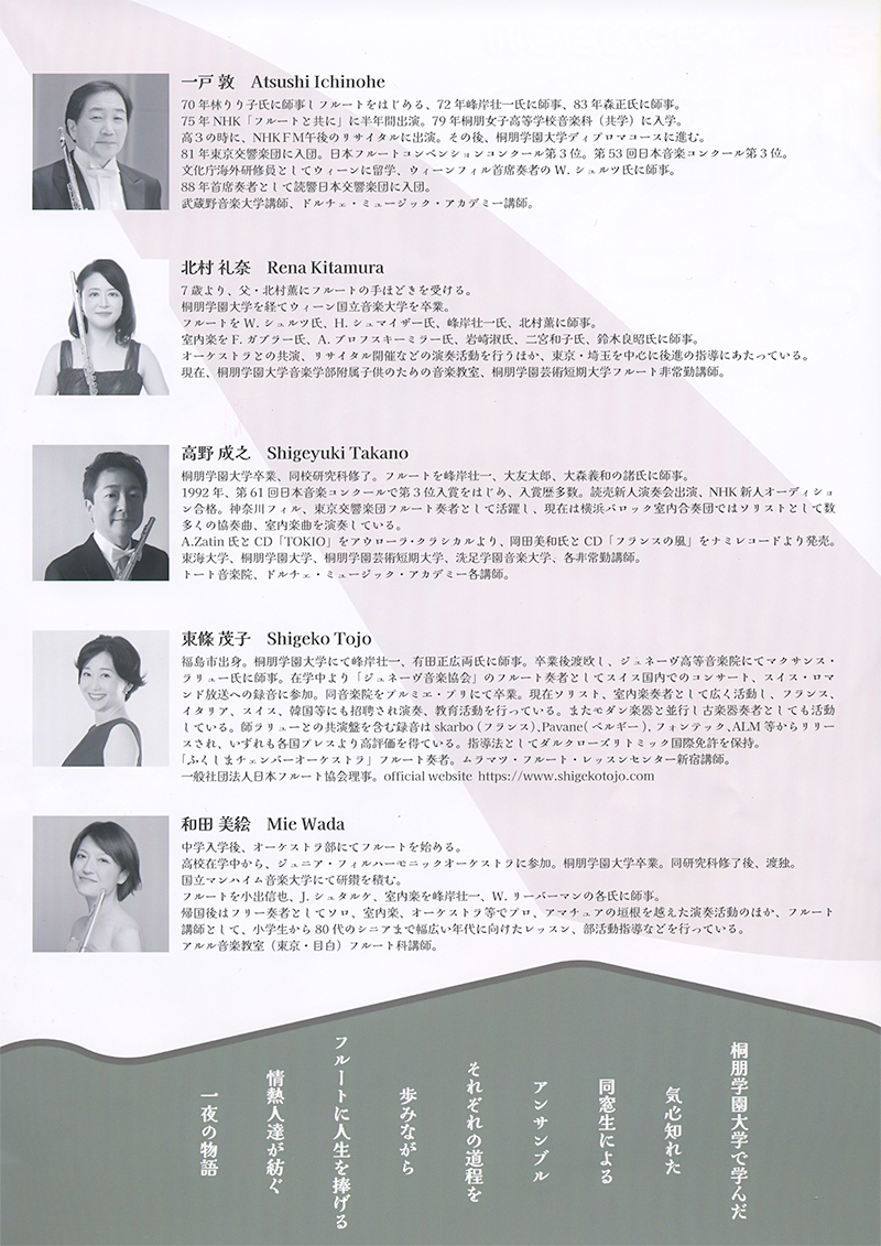 一戸敦、北村礼奈、高野成之、東條茂子、和田美絵(フルート)
