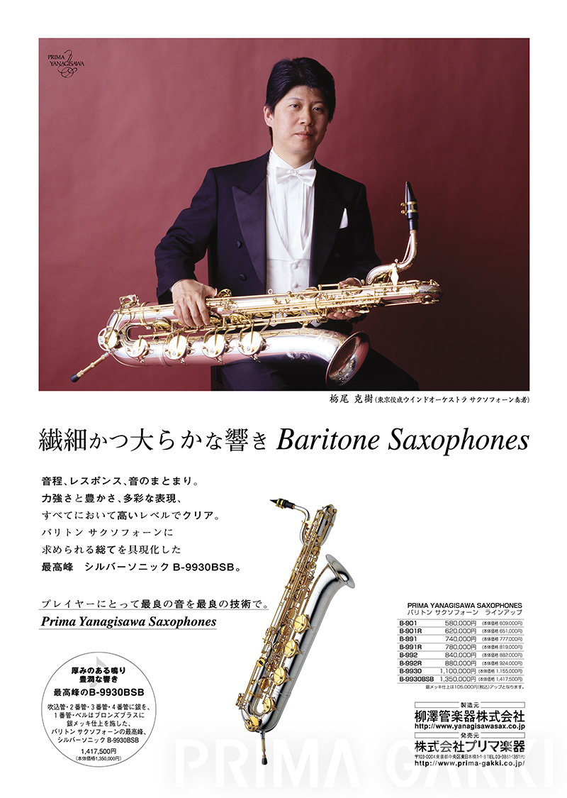 3月、プリマ・ヤナギサワサクソフォーン、国内初のバリトンサクソフォーン「B-6」(Low Aキー付)を発売。