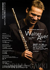 リサイタル告知チラシ。 平成19年、ウィーン・フィル首席フルーティスト、ワルター・アウアー氏の来日リサイタルを、三響フルート製作所とともに共同主催した際のもの。