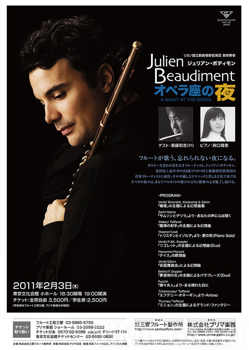 2月、リヨン国立歌劇場管弦楽団首席奏者ジュリアン・ボディモン氏リサイタル「オペラ座の夜」@東京文化会館小ホール、開催。