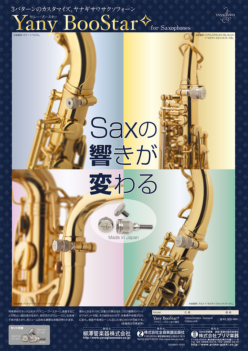 7月、プリマ・ヤナギサワ サクソフォーン、ネック止めネジ「Yany BooStar✧(ヤニー・ブースター)」発売。