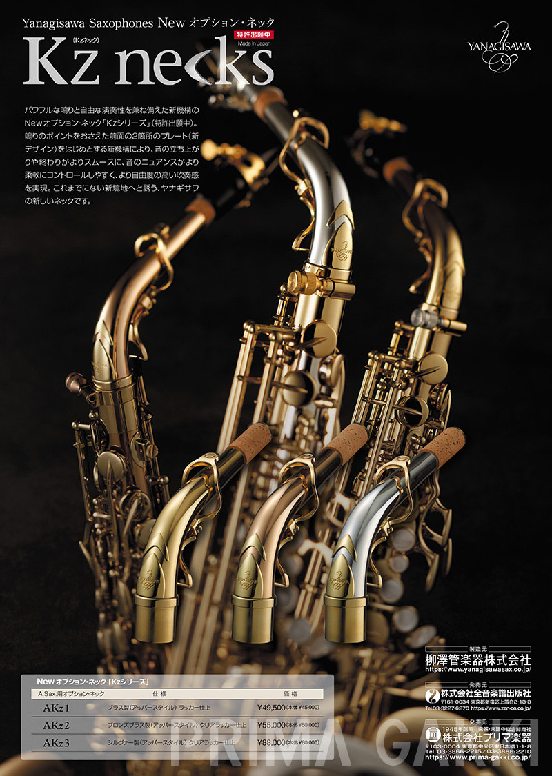 6月、プリマ・ヤナギサワ サクソフォーン、新オプション・ネック「Kzシリーズ」発売。
