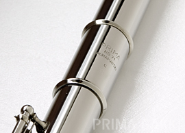 村松孝一氏の手による「プリマムラマツフルート NO.71」(これは昭和30年代初期に製造されたもの)。現代のフルートでは、トーンホールはカーリング仕上が一般的となっていますが、当時の日本ではまだ技術が導入されておらず、この楽器でも、やはり切削のままの状態に。職人技と試行錯誤に彩られた国産フルート黎明期ならではの姿が見られます。