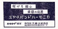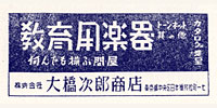 大橋次郎商店の雑誌広告(昭和26年)。 小さな広告ですが、教育用楽器を中心に、幅広い楽器を扱う問屋としての姿が表れています。