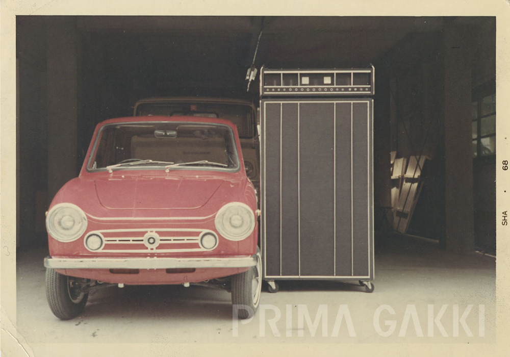 昭和40年代、東京サウンド株式会社が発売した Guyatone(グヤトーン)の特大アンプ「グランドキャニオン」。 隣に並ぶスズキ・フロンテや、奥に見えるトヨタ・トヨエースと比べても、その規格外の大きさは一目瞭然。 完成後になって運ばなければならないことを思い出し、どうやって運ぼうかと皆で頭を悩ませたという、当時ならではの微笑ましい逸話が残されています。