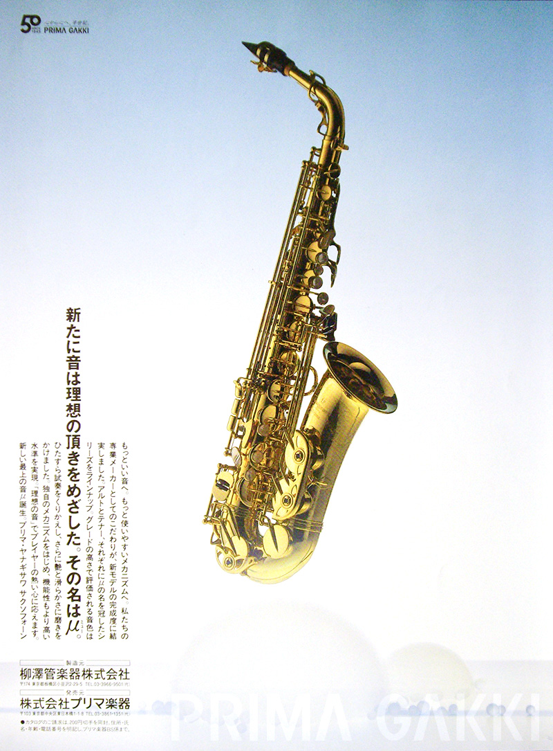 柳澤孝信氏、坂野勝二氏によって設立された 柳澤管楽器 が開発した第1号テナーサクソフォーン「モデルT-3」をはじめ、柳澤の製作するサクソフォーンの取り扱いを開始(以後「 プリマ・ヤナギサワサクソフォーン 」のブランドでプリマ楽器の主要商品の一つとなる)。